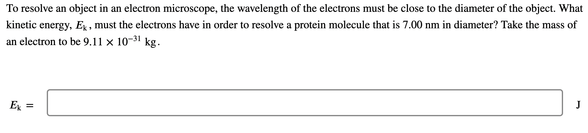 SOLVED: To resolve an object in an electron microscope, the wavelength ...