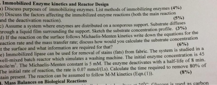 Solved Immobilized Enzyme kineties and Reactor Design | Chegg.com