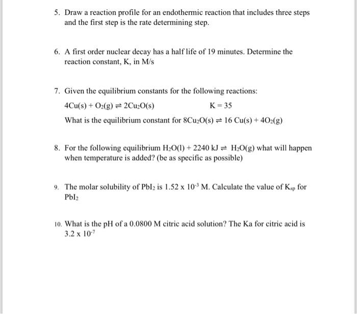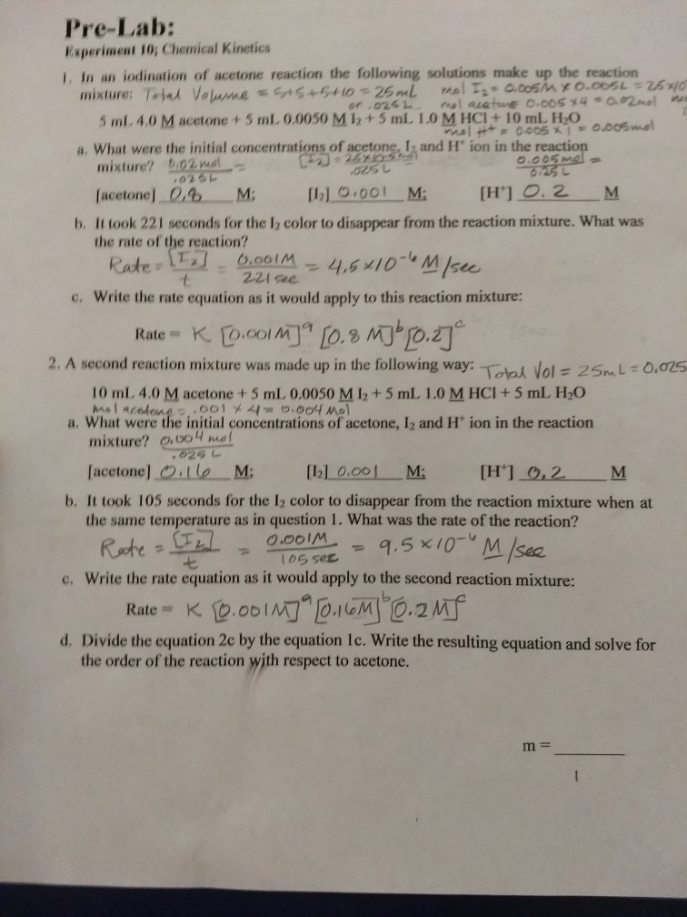 Solved Pre-Lab: Experiment 10: Chemical Kineties 1. In an | Chegg.com
