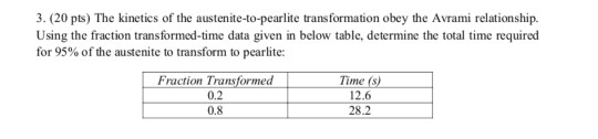 Solved 3. (20 pts) The kineties of the austenite-to-pearlite | Chegg.com