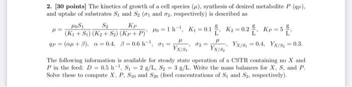 Solved 2. [30 points] The kineties of growth of a cell | Chegg.com