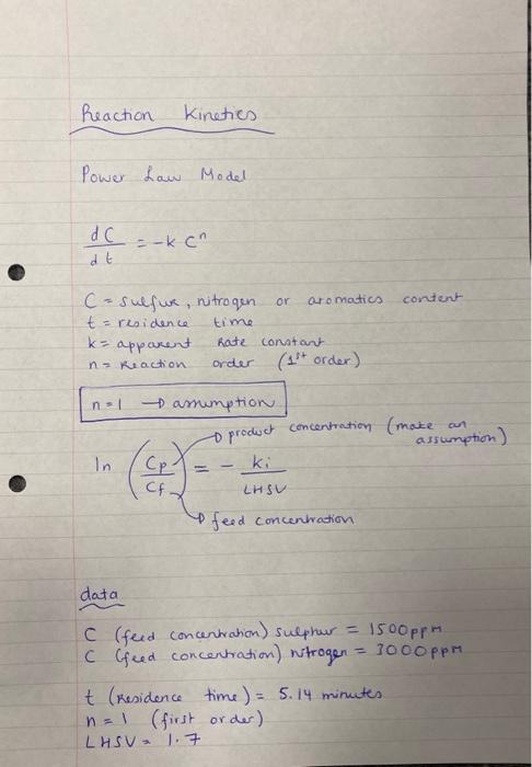 Solved Reaction Kineties Power Law Model dtdC=−kCn C= | Chegg.com