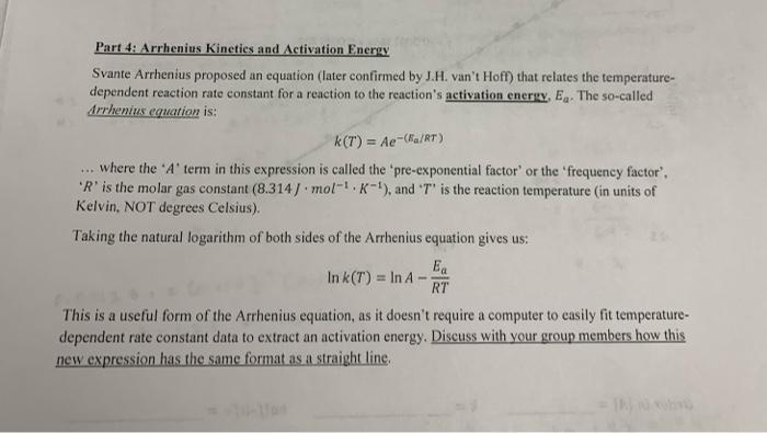Part 4: Arrhenius Kineties and Activation Energy | Chegg.com