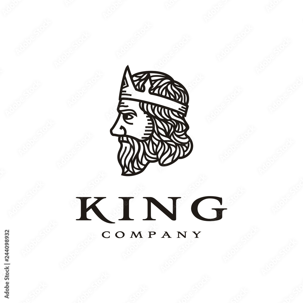 Old Man Face with Beard Mustache and Ancient Crown for Lord King Line ...