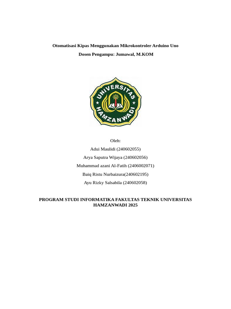 Perancangan Kipas Otomatis Berbasis Arduino - Tugas Akhir Semester ...