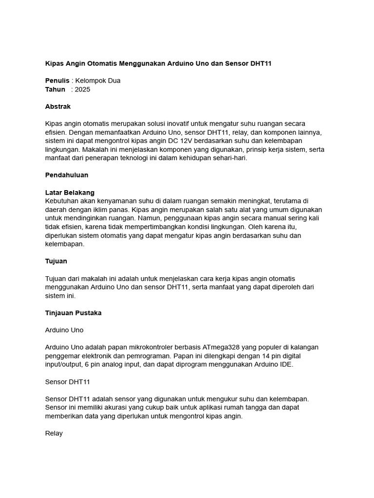Kipas Angin Otomatis Menggunakan Arduino Uno Dan Sensor DHT11 | PDF