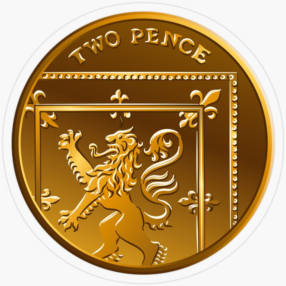 Kira Sticker Vector British Money Gold Coin 2 Pence - Perfect Birthday ...