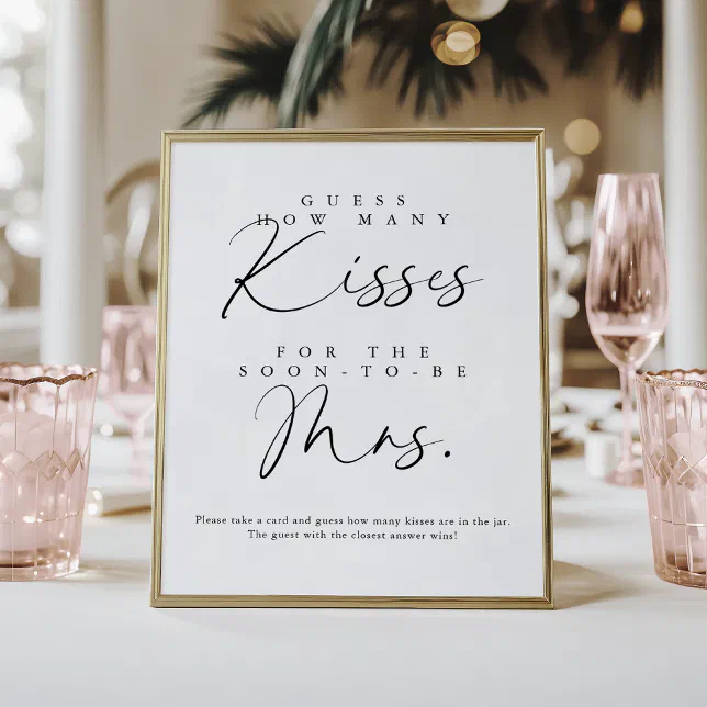 Elegant Handwritten Script How Many Kisses Game Poster | Zazzle