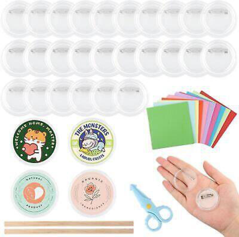 Clear Button Badge with Pin,30Pack Acrylic Design DIY Button Pins Kit ...