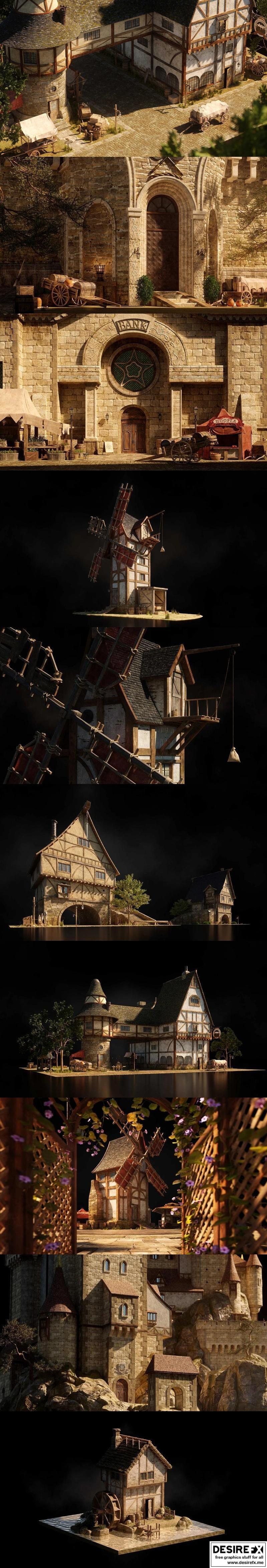 Kitbash3D Enchanted 魔法王国城堡村庄场景3D模型 – 腾龙工作室