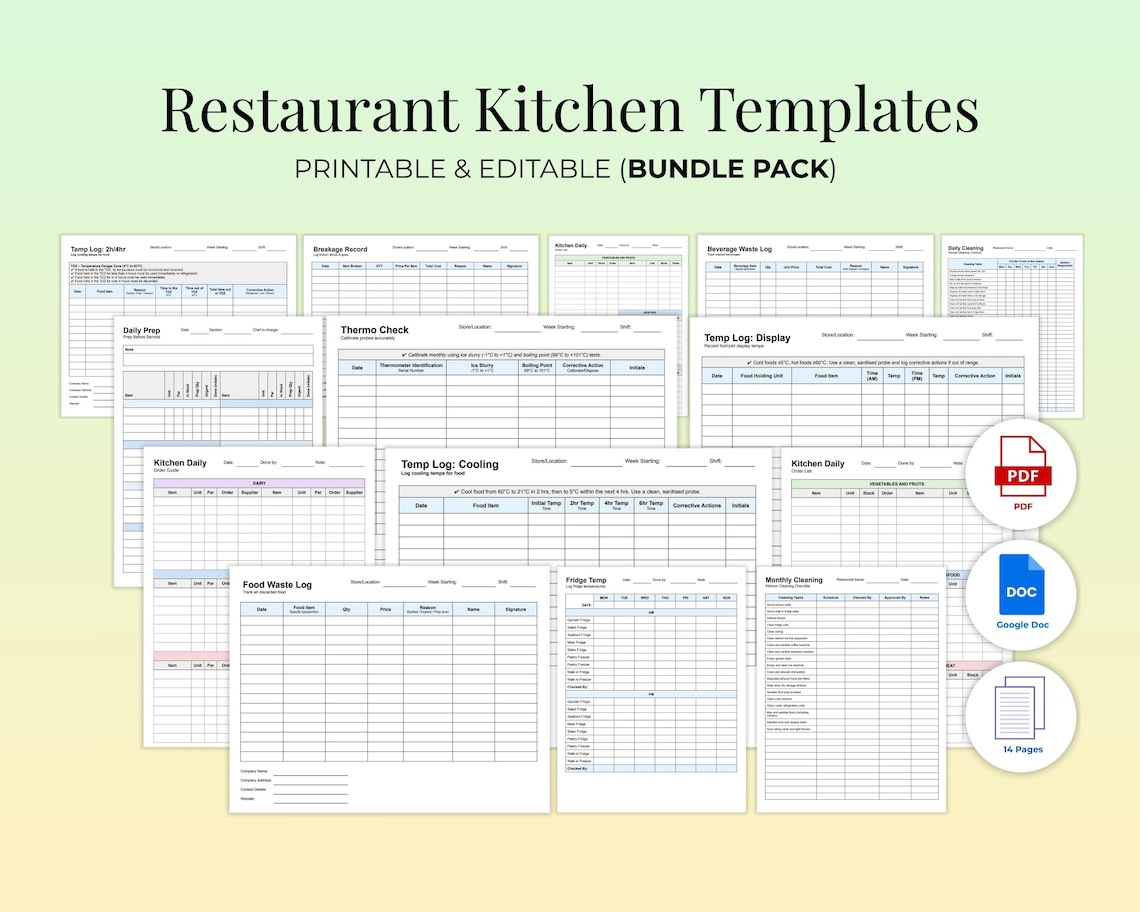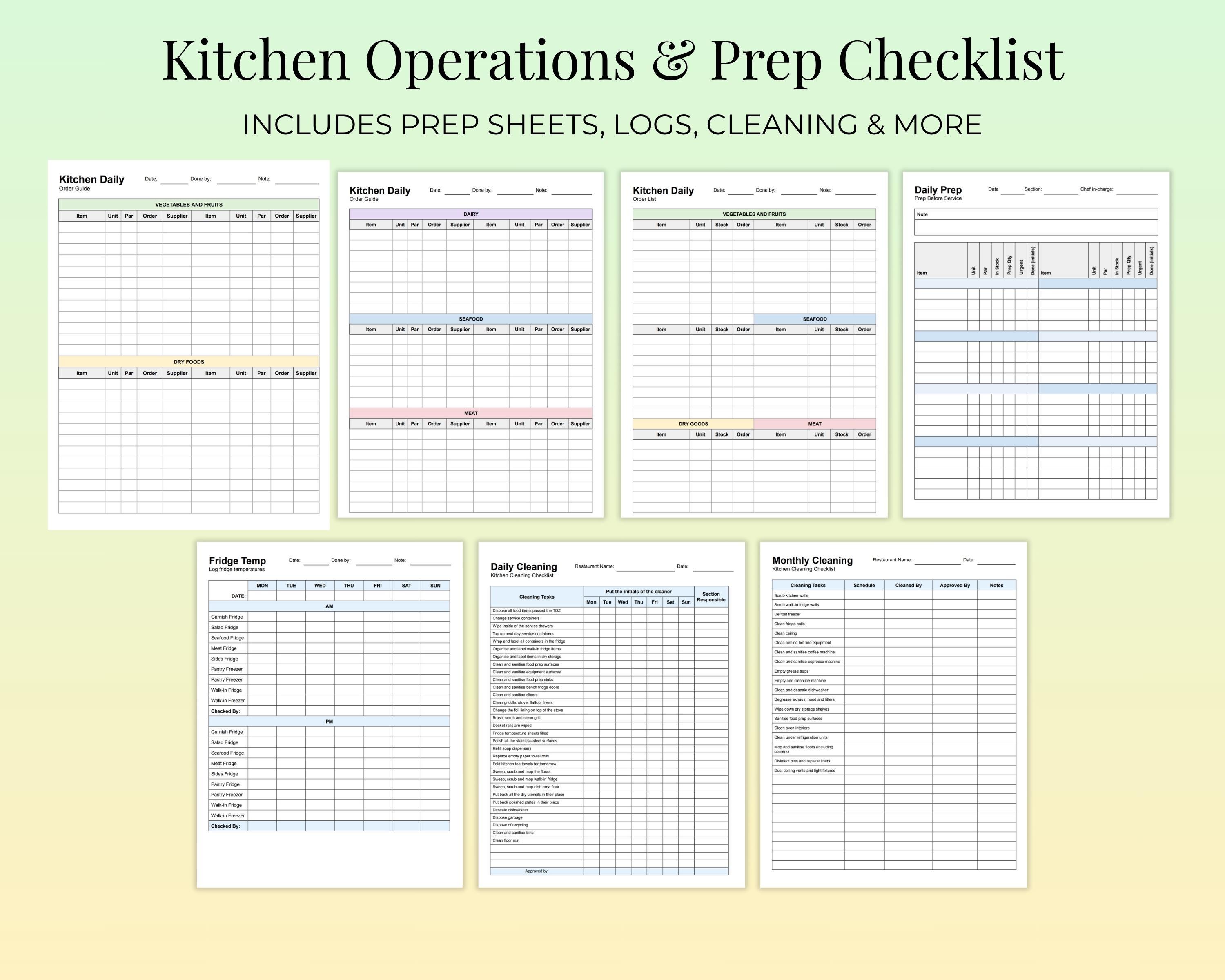 Restaurant Kitchen Templates Bundle, Order and Prep List, Fridge and ...