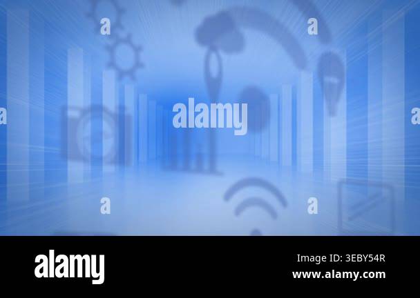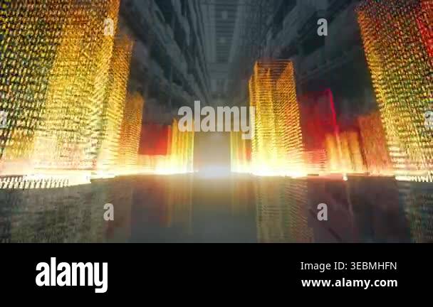 Composition of exploding data processing over cityscape. Global ...