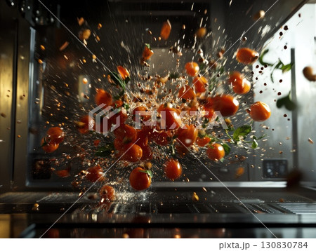 Exploding Tomatoes and Herbs Splashing in the...のイラスト素材 [130830784] - PIXTA