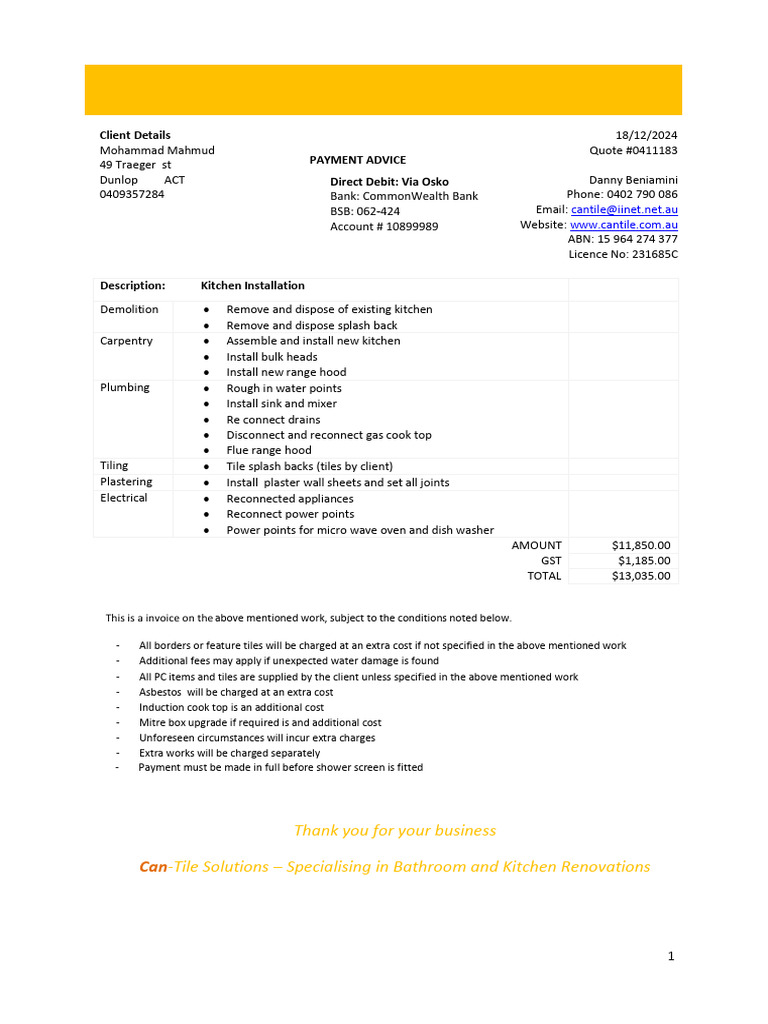 Kitchen Renovation Invoice | PDF