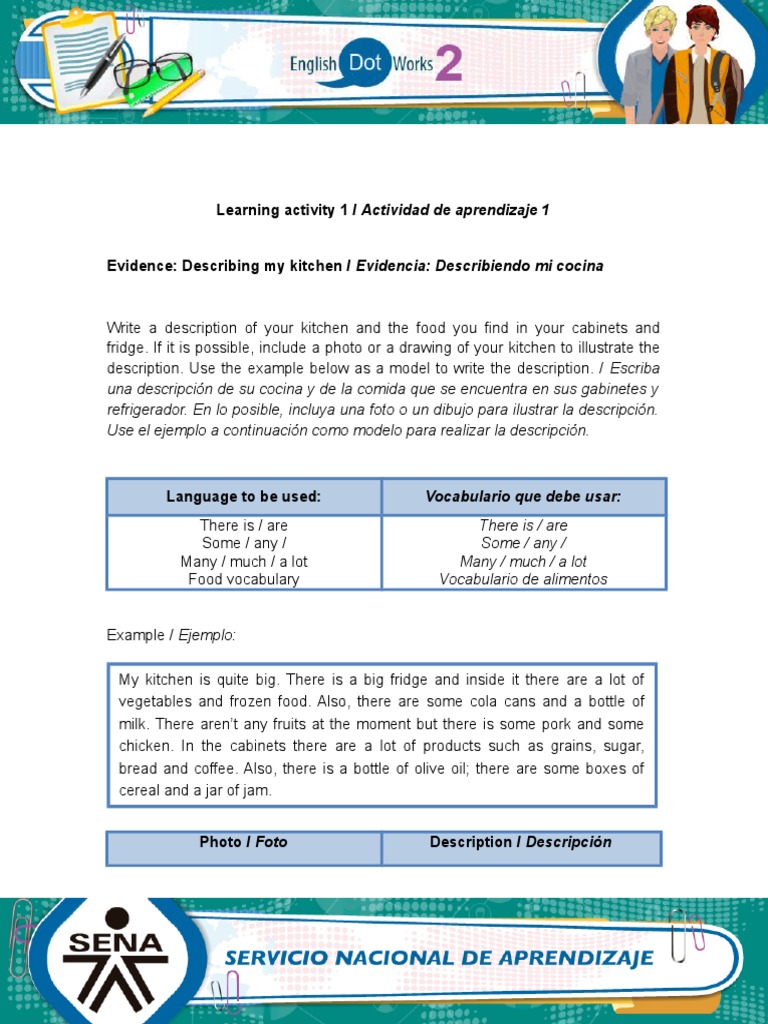 Kitchen Description Writing Activity | PDF | Food Industry | Cuisine