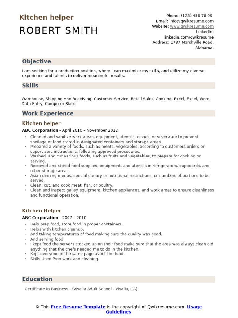 Kitchen Helper Job Responsibilities at Anthony Tryon blog