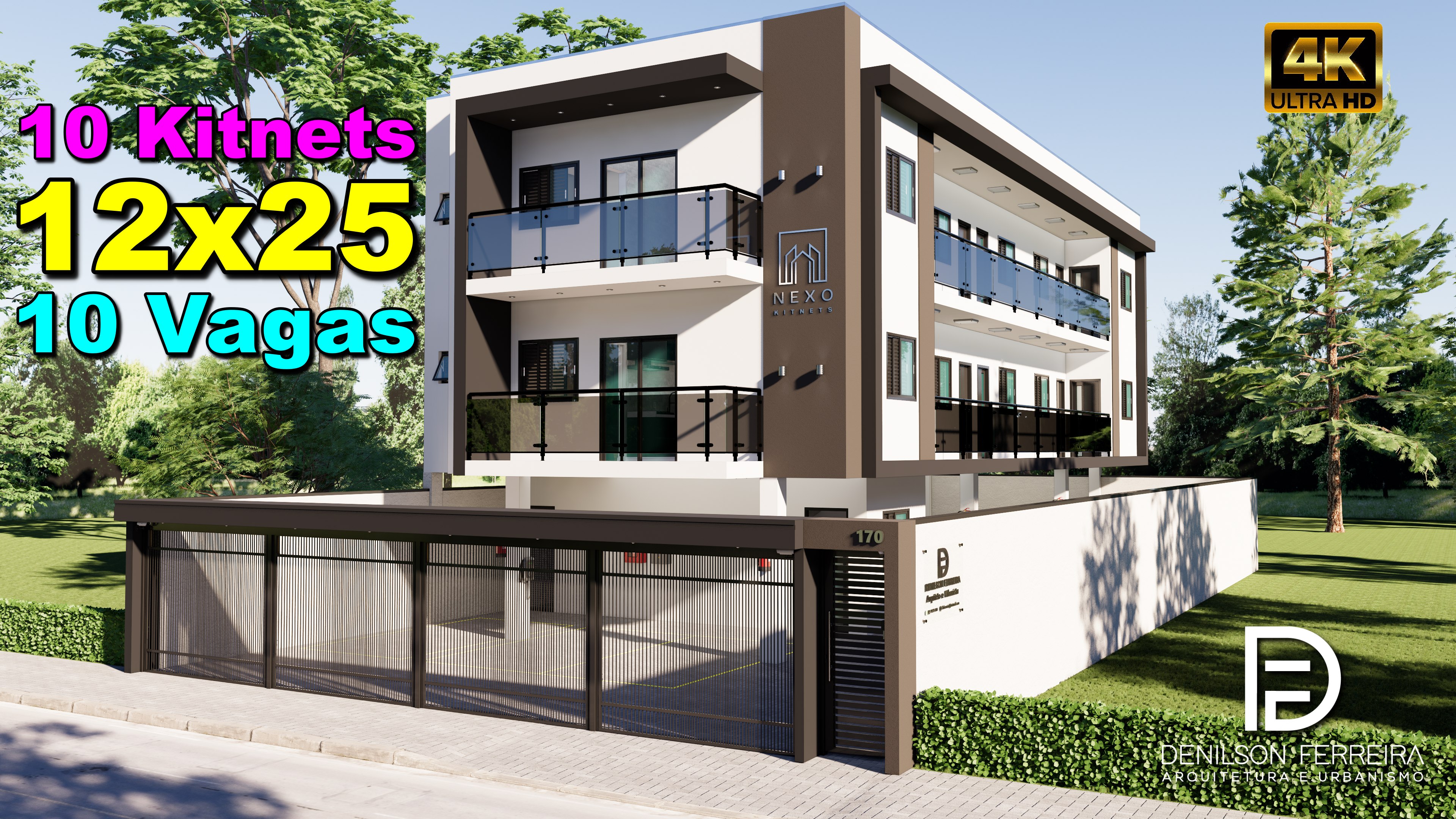 Projeto de 10 Kitnets Modernas em Terreno 12x25 com 10 Vagas - Deni...