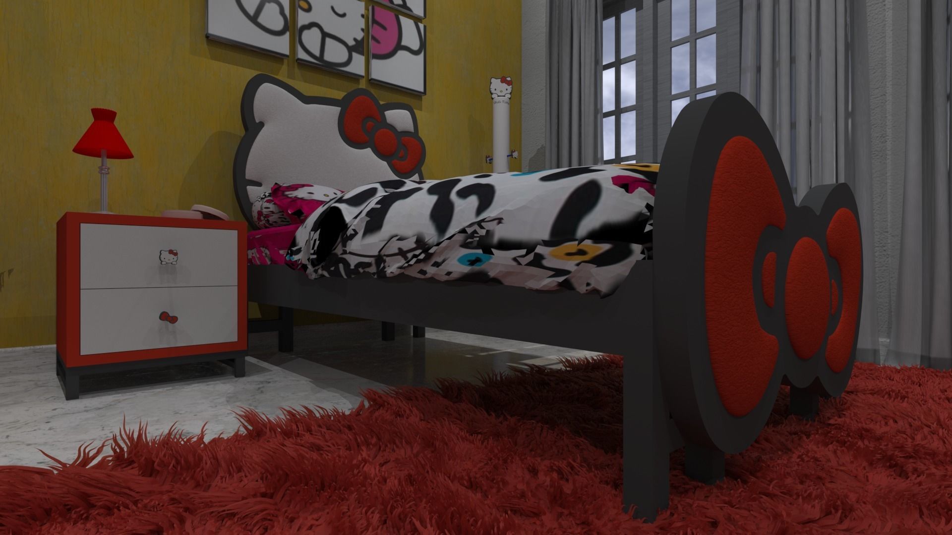 Hello Kitty bedroom RED color style 3D model | CGTrader