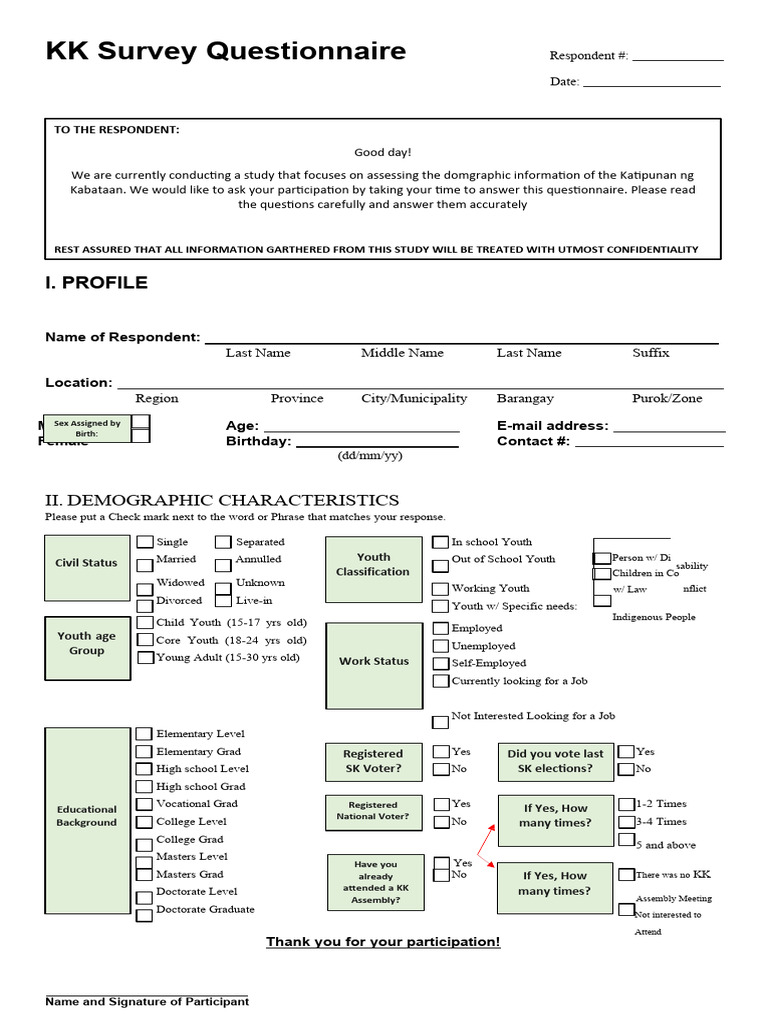 KK Demographic Profiling Survey Questionnaire - Studocu