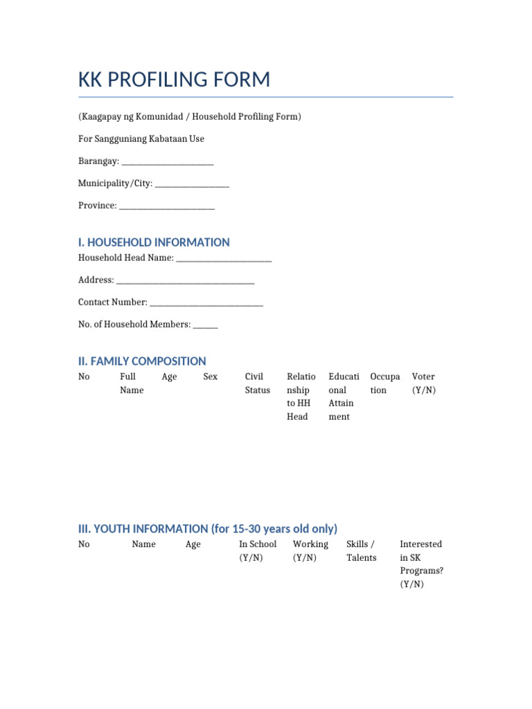 New Youth Profiling Template KK Survey | PDF