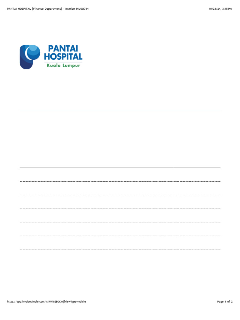 PANTAI HOSPITAL (Finance Department) - Invoice INV06784-2 | PDF ...