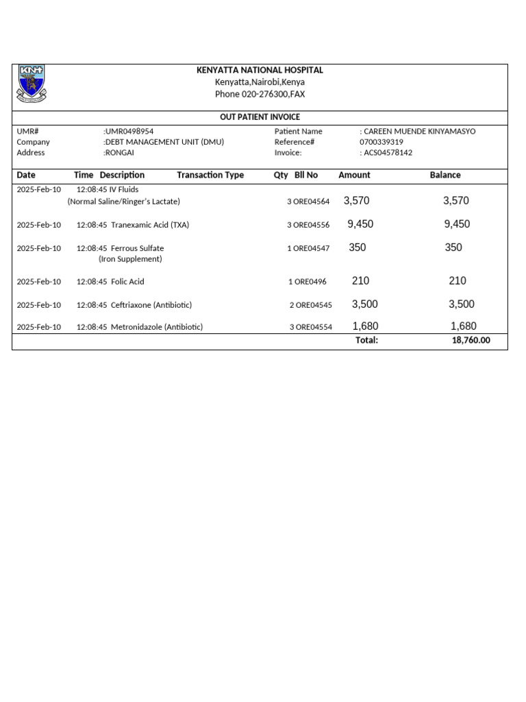 KENYATTA NATIONAL HOSPITAL Invoice | PDF