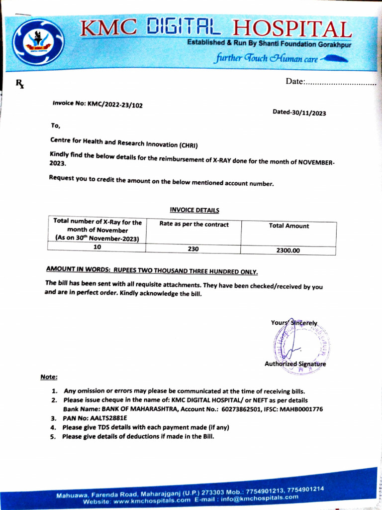 KMC Hospital X-Ray Reimbursement Invoice | PDF | Health Care | Service ...