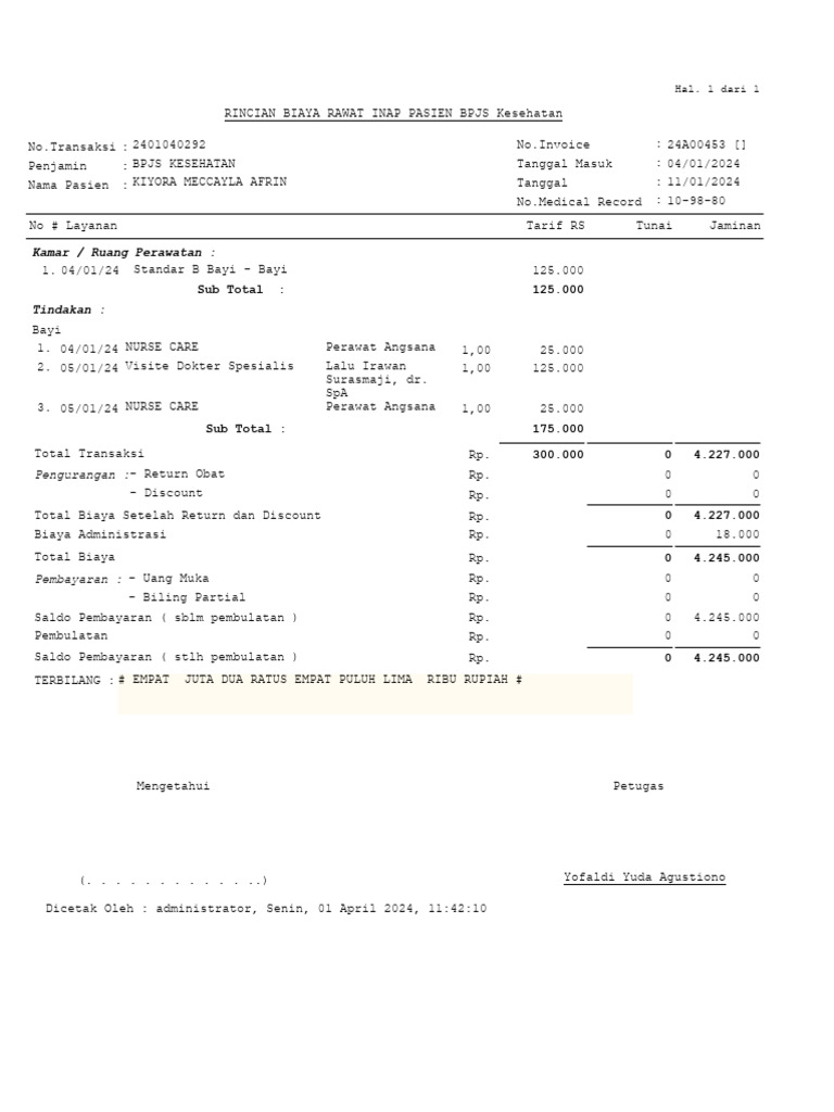 Invoice Rumah Sakit | PDF