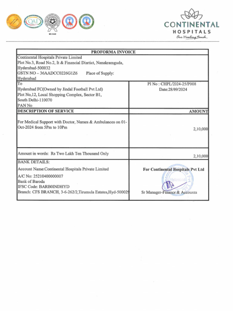 Continental Hospital Invoice | PDF