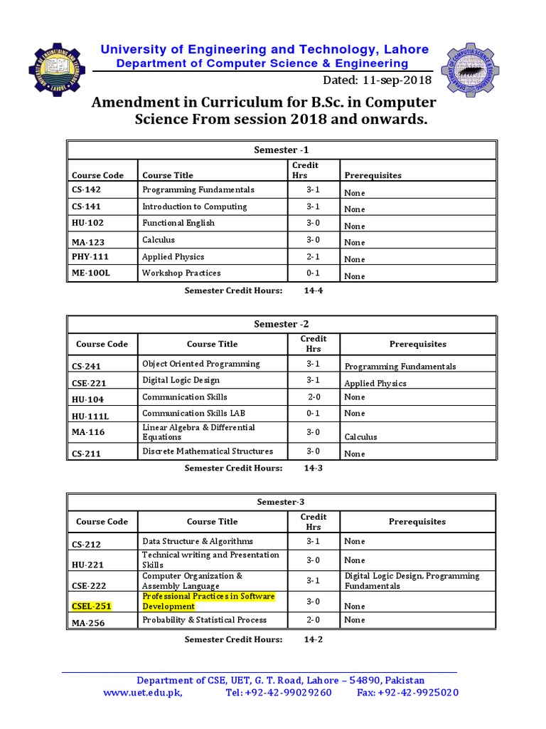 UET Lahore B.Sc. CS Curriculum Update | PDF | Computer Science ...