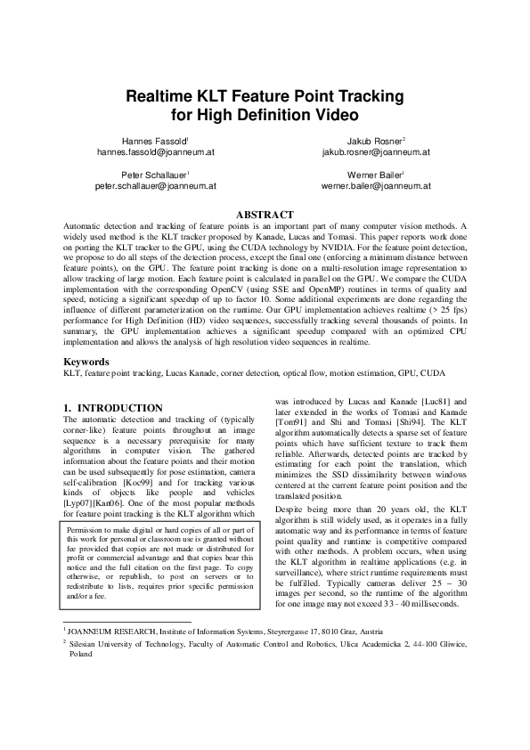 (PDF) Realtime KLT Feature Point Tracking for High Definition Video