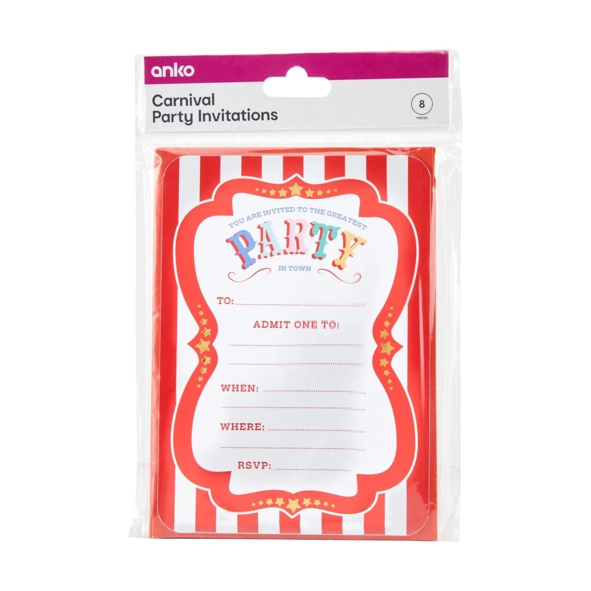 8 Piece Carnival Party Invitations - Kmart NZ