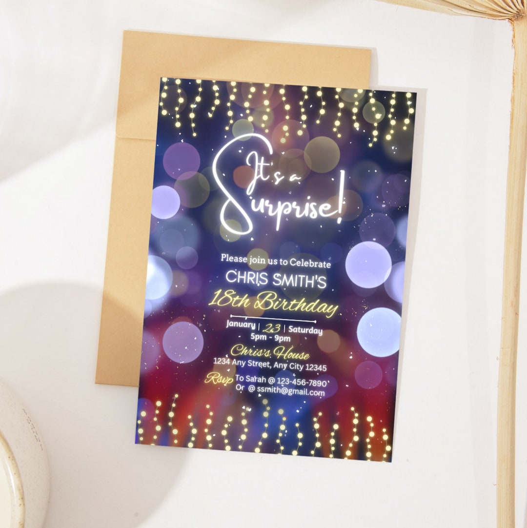 Customizable Bright Lights Birthday Invitation, Birthday Invite, Fully ...