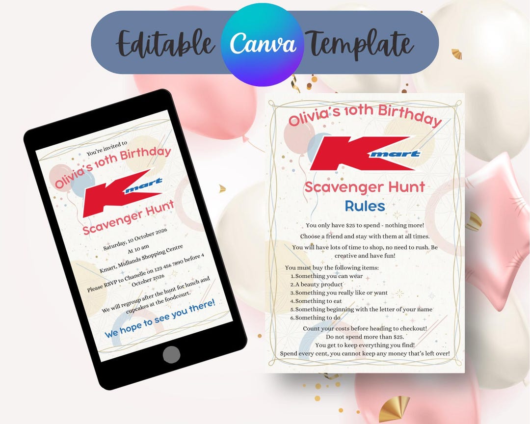 Kmart Birthday Scavenger Hunt Invitation | Editable Canva Template ...