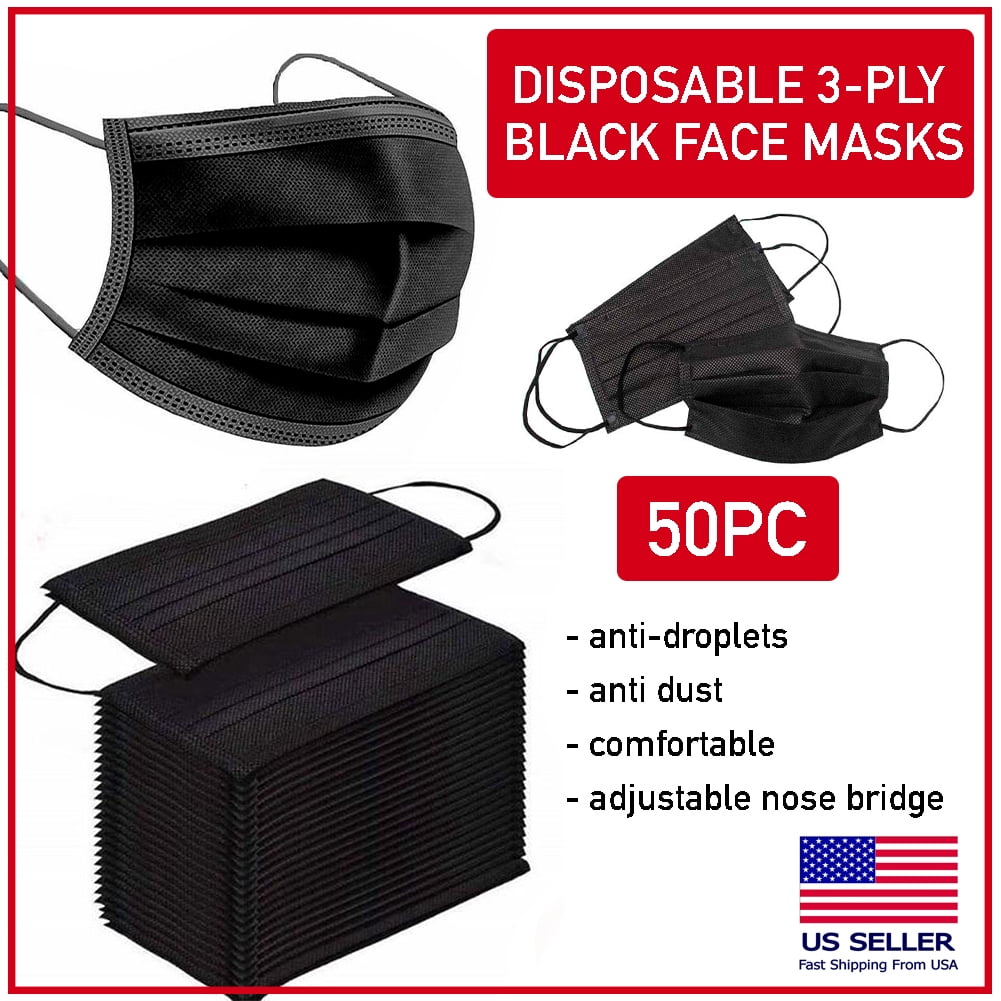 50 PCS Black Disposable Face Mask Triple Ply Ear-Loop Mouth Cover ...