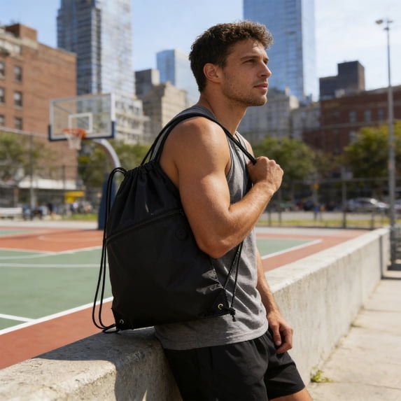 Black Drawstring Bag Waterproof String Backpack Cloth Lightweight Sport ...