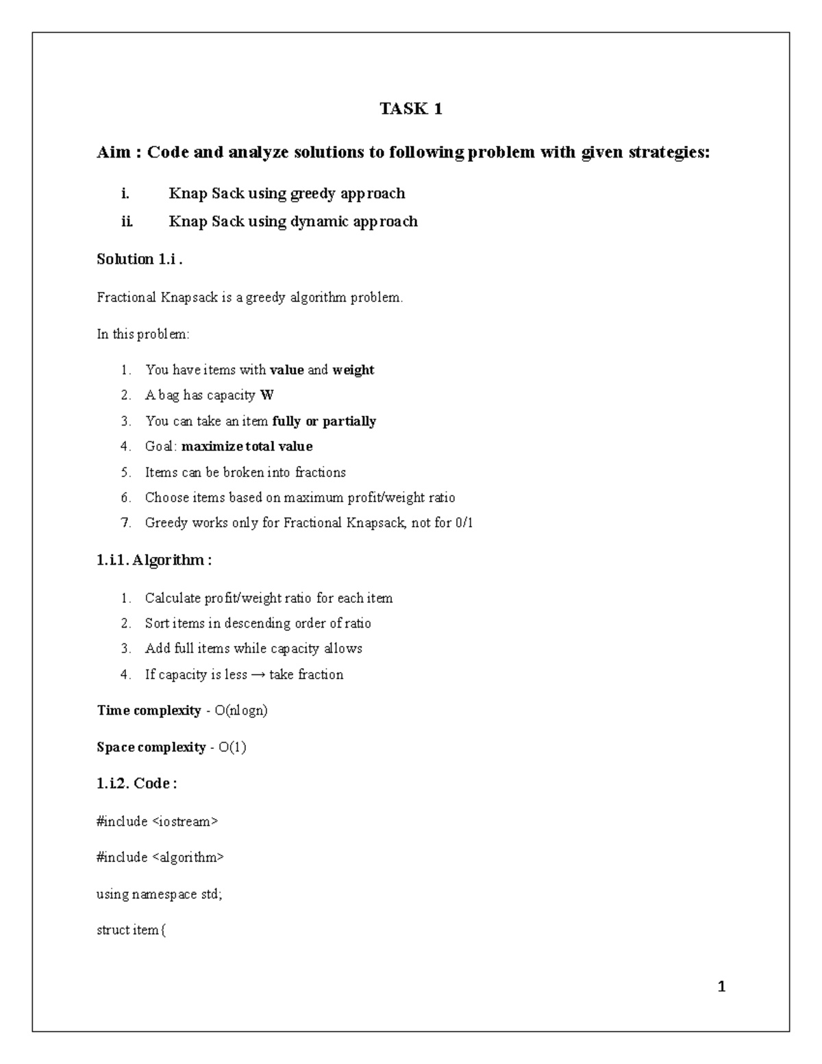 Memory Functions: Dynamic Programming for Knapsack Problem - Studocu