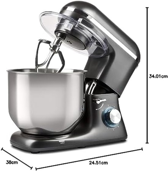 Deegmachine - Kneedmachine - Met 5.5L Mengkom - 1200 Watt - Zilver | bol