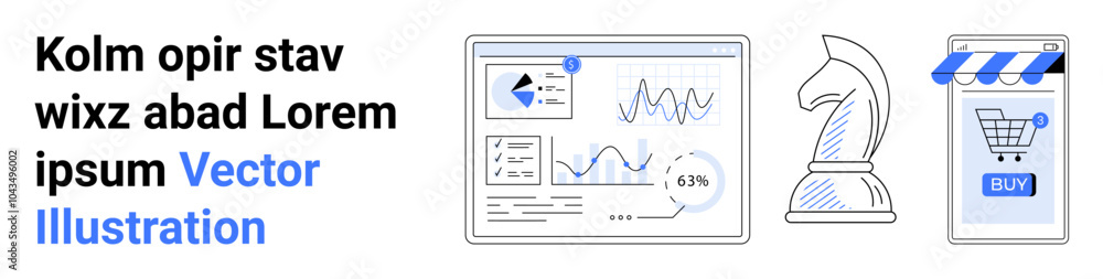 Business analytics interface, a chess knight, and a mobile shopping app ...