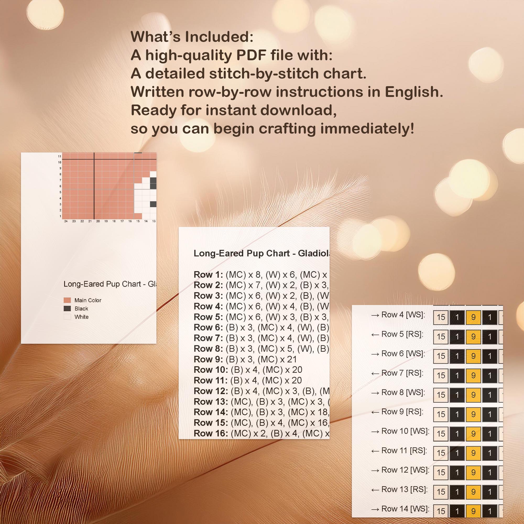 Long-eared Pup Knitting Chart - PDF Instant Download - Floppy Ears Dog ...