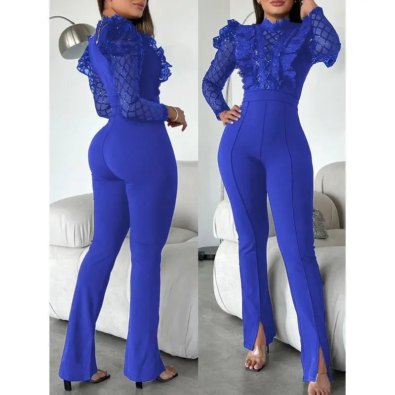Unique Polyester Knit Fabric Jumpsuit with Color-Block Lace Details ...