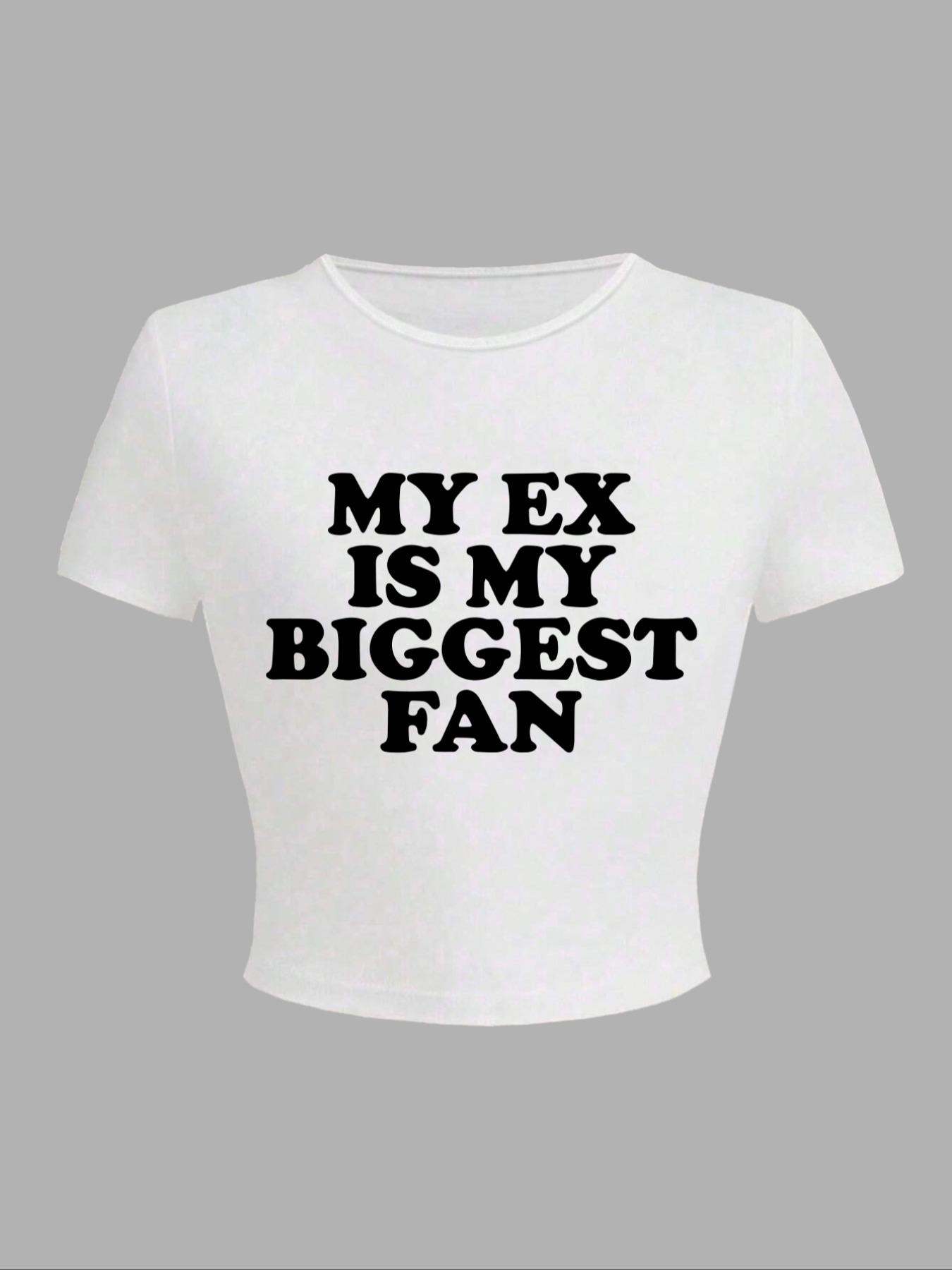 Women's Letter Print Round Neck Tee, Fashion Casual Crew Neck Cap ...