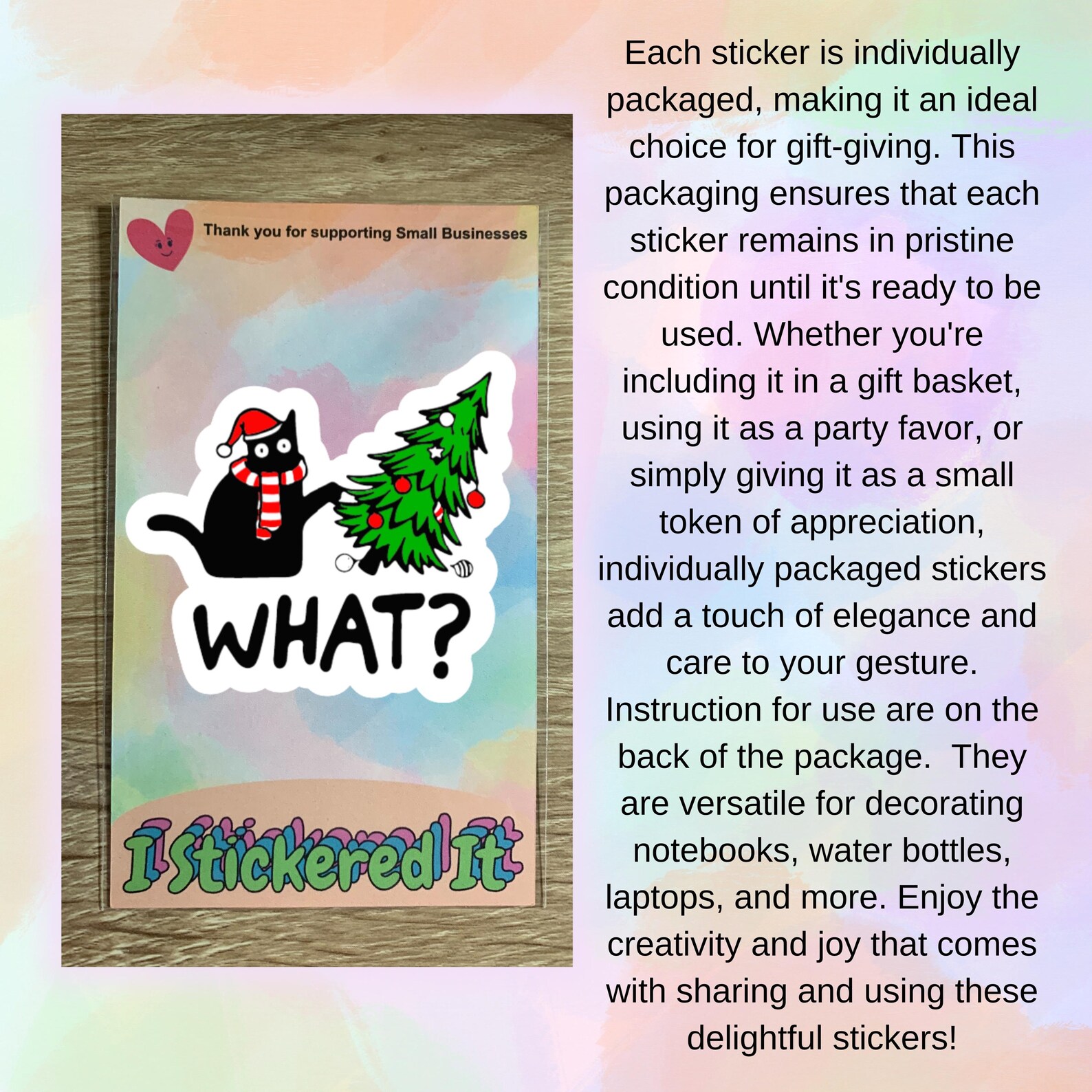 Funny Cat Christmas Sticker, Knocking Tree Over, What?, 3 Size Options ...