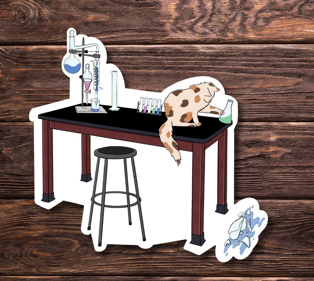 Cute Science Sticker, Cat Knocking Things Over, Vinyl, STEM, Laptop ...
