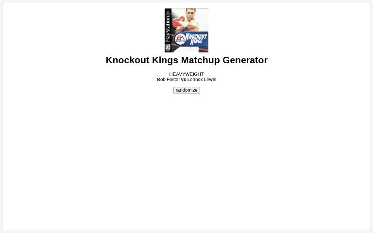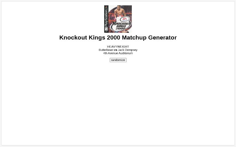 Knockout Kings 2000 Matchup Generator
