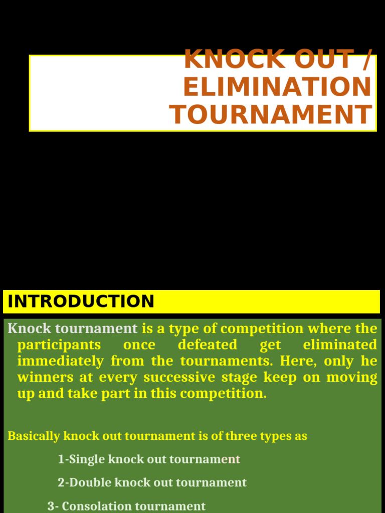 Write a note on the term "Knockout". Make a Knockout fixture for 16 ...