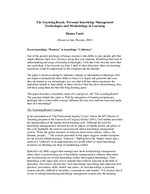 (PDF) The Learning Bench: Personal Knowledge Management Technologies ...