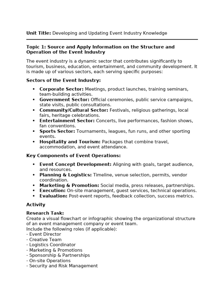 CHAPTER 1 EVENT INDUSTRY KNOWLEDGE TYPES OF EVENT