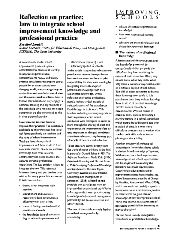 (PDF) Reflection on practice: how to integrate school improvement ...