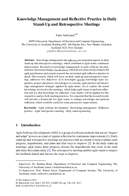 (PDF) Knowledge Management and Reflective Practice in Daily Stand-Up ...